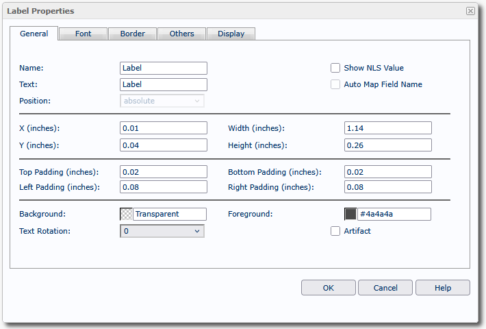 Use this tab to modify the display type of the label. For more information, see Data Field Properties.
