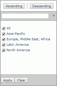 Customized control is a user-defined web action dialog box for performing the sort and filter operations. It works only in page report tables that use query resources. This topic introduces how you can define and manage customized controls in a table.