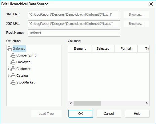 Designer displays the Edit Hierarchical Data Source dialog box when you right-click a hierarchical data source and select Edit Hierarchical Data Source from the shortcut menu in the Catalog Manager, and provides you with different options in the dialog box according to the type of the HDS: general HDS or XML HDS.